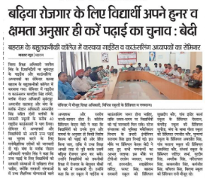 On the occasion of World Youth Day, Sh KS Bedi proudly represented GPC Behram in a special broadcast of Sohni Saver on Akashvani Jalandhar, a program known for its engaging discussions and social relevance. The episode was hosted by renowned radio anchor Pooja Handa, who facilitated an insightful conversation on the pressing issues confronting the youth of Punjab today. During the program, Bedi highlighted a range of challenges faced by the younger generation, including rising unemployment, academic pressure, drug abuse, lack of career guidance, and the growing digital divide in rural areas. This thoughtful representation not only reflected the values of GPC Behram but also amplified the voice of Punjab's youth on a respected public platform.